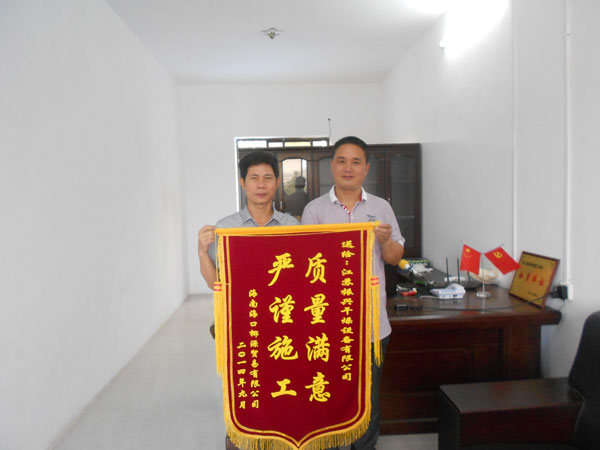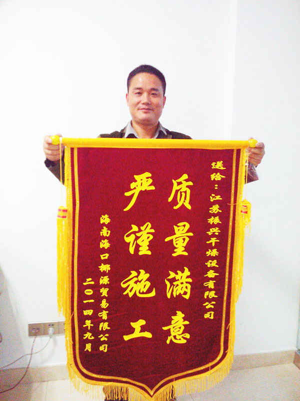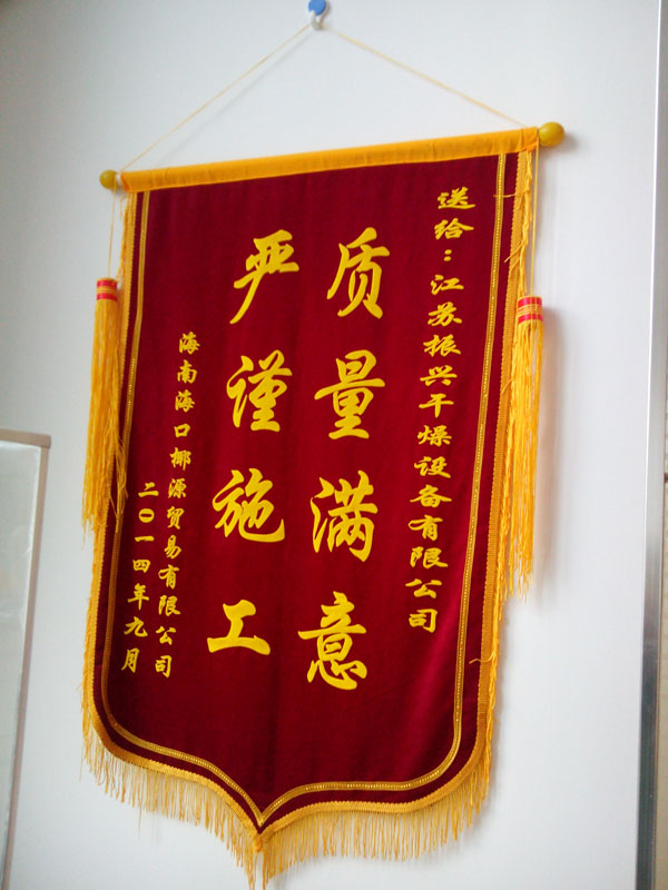 “以质取胜,立信为本”是“振兴”人的一贯宗旨,每位“振兴”人都将这一信条融入到自己每天的工作之中。正如海南海口椰源贸易有限公司的锦旗上写道的一样——“严谨施工,质量满意”。正是凭借着这样的服务态度振兴干燥才能屡获行业内及广大客户的好评。