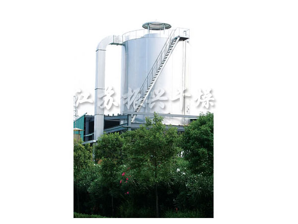 本机组工作过程为料液通过隔膜泵高压输入,喷出雾状液滴,然后同热空气并流下降,大部分粉粒由塔底排料口收集,废气及其微小粉末经旋风分离器分离,废气由抽风机排出,粉末由设在旋风分离器下端的授粉筒收集,风机出口还可装备二级除尘装置,回收率在96-98%以上。