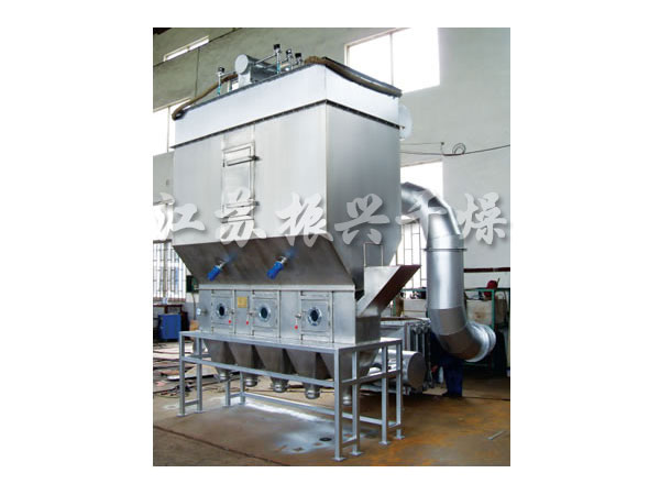 沸腾干燥机,又称流化床干燥机,它是由空气过滤器、加热器、沸腾床主机,旋风分离器,布袋除尘器、高压离心风机、操作台组成,由于干燥物料的性质不同,配套除尘设备时,可按需要考虑,可同时选择旋风分离器、布袋除尘器,也可选择其中一种,一般来说比重较大的如冲剂及颗粒料干燥只需选择旋风分离器,比重较轻的小颗粒状和粉状物料需配套布袋除尘器,并备有气力送料装置及皮带输送机供选择。