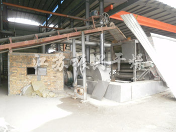 滚筒式干燥机的工作原理是让液体或泥浆状物料 在水蒸气或其它热载体加热的滚筒表面形成薄膜,滚筒转一圈的过程中便被干燥完毕,用刮刀把产品刮下来,露…